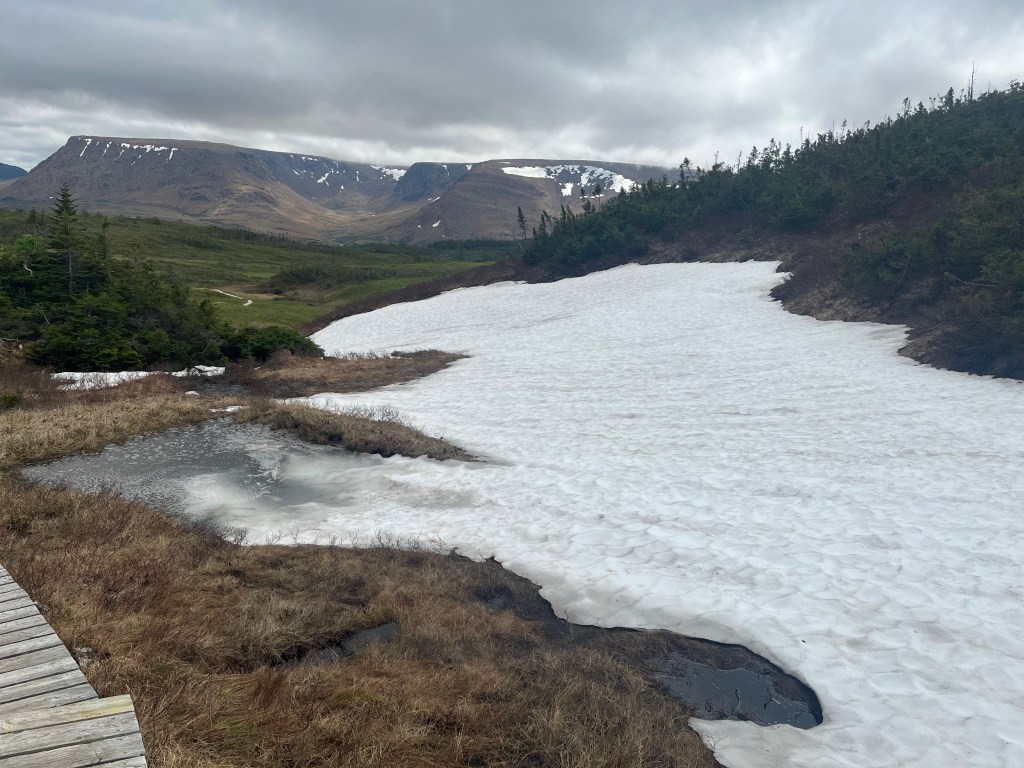 14. Suis dans ma voiture. Arrêtée. La fenêtre est à peine entrouverte. Un maringouin m’a flairé. Pas capable d’entrer. La fente est trop mince. Depuis quinze minutes il va et revient. Passe une patte. Le revoici pour une quatrième fois. Quin mon moustique ! Zeuzzeuzz toi même !13. Vue du camping Berry Hill, à partir de la butte du même nom. Il fait 25 degrés et humide aujourd’hui au parc du Gros-Morne. Gosh ! Fait chaud. Sortez-moi d’ici. Signé : Le ronchonneux 😜12. Étang Berry Head. Fort joli. Il est couvert de nénuphars jaunes. Par ailleurs, info non pertinente tout en étant hors de propos, le mot Whiskey est un des plus payants au Scrabble.11. 15h. C’est l’heure d’une tite bière locale. On peut pas dire que j’abuse; c’est ma quatrième en quatre semaines et demi. Ce n’est certainement pas ça qui maintient ma bedaine en vie 😕. Par contre, faudrait jeter un œil à ma consommation de crème glacée 😜.10. Shallow Bay. Nous sommes quatre humains et une mouette à méditer devant la beauté du paysage. Depuis vingt minutes. Sans dire un mot. « Bof ? »; « Oui ? »; « Ça médite une mouette ? »; « C’est pas ça le point. Lâche moi. Je passe un beau moment là”.9. Hé hé ! J’en ai vu un. Pas de bois. Une. Un orignal femelle. En plein milieu du chemin. À 6h30 du mat’. Zut ! J’ai pris la photo trop tard. Elle a gambadé dans le bois à gauche.8. À 450 mètres d’altitude, de la neige 😁. J’ai pas pu y mettre le pied. Le deux mètres qui la sépare du trottoir de bois est une belle swamp.7. Un bateau de croisière (le Ocean Endeavour) s’est ancré dans le bras de mer Bonne Bay au large de Woody Point (si si; agrandissez). Un petit tour de l’île de Terre-neuve en onze jours à partir de 4,500$. … US. Probablement que les croisiéristes vont ensuite passer quelques nuits au Fogo Island Inn !6. Green Gardens. Outre les moutons, il y a deux trois points de vue qui me mettent hors d’ha-laine (Bon. Ok. Zéro point pour celle-là 😕).5. Moutons de mer ? 😜 Ils sont une dizaine à vivre sur la falaise à Green Gardens. En bordure de mer. A des lieux de toute civilisation. Qui les tond ?4. Sur une terrasse de Woody Point. Le mont Gros-Morne est soudainement invisible l’autre côté de Bonne Bay. C’est la brume ? … ou ma bière qui fait effet ?🤪3. Étang Trout River. Près du camping et du village du même nom. La vue est à se jeter à terre … et les bibites sont à se pitcher sur les murs. Elles viennent en paquets de mille. J’avais prévu une semaine à ce camping. Ce sera deux jours. Ma santé mentale (qui doit bien être quelque part dans mes bagages 🧐) en dépend.