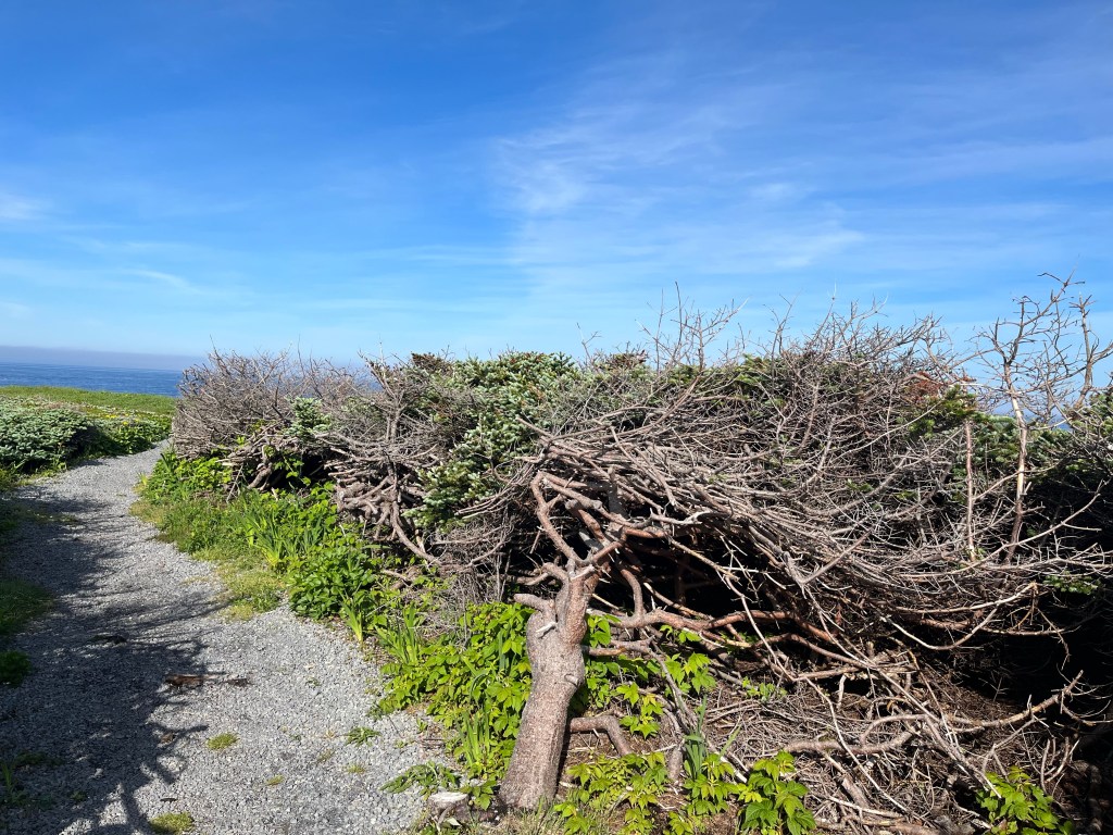 47. Il semble que je développe une affection particulière pour les vieux quais de pêche 😀.46. Bof qui gèle confortablement (on gèle comme on peut) à Port-au-Choix.45. Port-au-Choix. Bon ok. Bof ne progresse pas beaucoup en terme de qualité de photos animalières mais il est bien bien là. Un caribou. A mi-hauteur vers la gauche. Sauf erreur, il sourit 🤔.44. J’en suis à 9000 km de parcouru dans ce voyage. Je me rendrai probablement à 12000 km. Alors que mon estimé de départ était de 6000. « Bof ? ». « Oui ? ». « C’est aussi toi qui a produit l’estimé du budget ? ». « Oui. Pourquoi ? ».43. Le plan : M’installer ici pour la journée et, enfin, entamer la lecture des polars écrits par Ami. La réalité : Fait pas vraiment chaud avec des rafales frettes de 50-60 km/h. Fait que ? Je sais pas. J’ai déjà fait toutes les randos du coin, déjà visité ce qu’il y avait à visiter, pris ma douche, déjeuner, épilé le nez (!), gratté le derrière (!!), flatté le bedon (!!!). Ah la la ! Dure vie les enfants !42. Toujours Cow Head. Non Soeur, outre un possible trait d’humour terre-neuvien, je n’ai pas trouvé l’origine du nom du village.41. Photo jolie. Texte pas rapport (mais instructif). Le phénomène qui fait que la végétation en bord de mer est rabougrie (et à le toupet d’un bord) s’appelle : Tuckamore.40. Village de Cow Head. Mémorial aux vétérans. Pourquoi le drapeau de l’Angleterre ? Par ce que Terre-Neuve était un territoire Anglais (et non Canadien) durant les deux guerres mondiales. Elle est devenue une province canadienne en 1949 à la faveur d’un référendum gagné à 52 %.