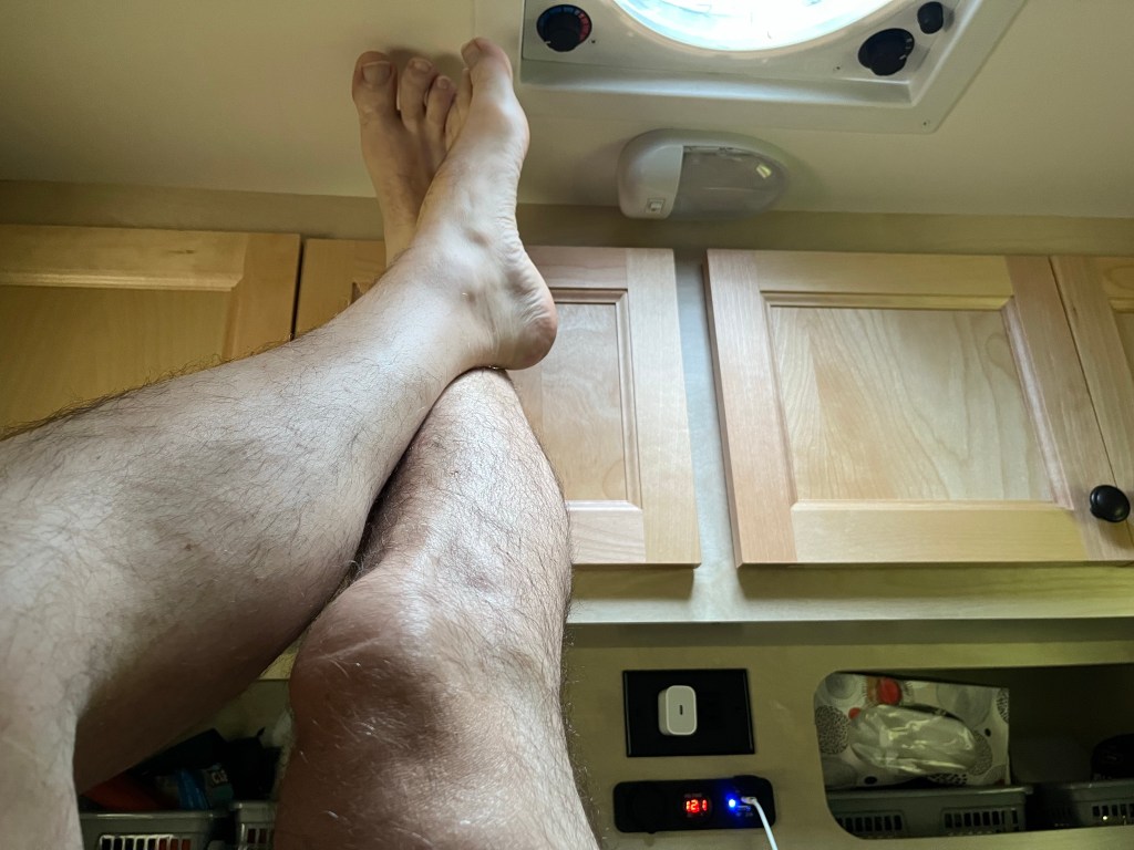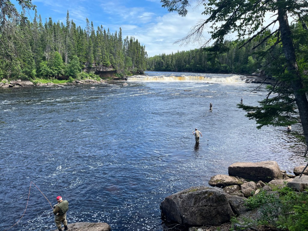 33. Submergé. Voilà comment je me sens en ce premier juillet. Tout est rouge. Chaque roulotte a son drapeau du Canada. Chaque pick-up a des fanions. Tout le monde est en rouge. Les filles ont des drapeaux dans les cheveux. Ouaippe ! C’est le Canada Day. LE québécois du camping se tient tranquille 🤣32. Bazwell mec ! On voit les saumons sauter dans la chute ! Vraiment cool ! 😃. Ce sont les saumons nés il y a cinq ans qui reviennent sur leur lieu de naissance pour frayer à leur tour.31. Même maison rouge en plan large (ça se confirme, quel talent ce Bof ! 😎)30. Maison rouge sur paysage vert et bleu (quel artiste quand même ! 😎)29. Lark Harbour. Vue du mont Turtoise. Tôt le matin j’étais sur le mont au centre.28. Mon site de camping se trouve sur l’étroit isthme qui sépare ces deux bras de mer.27. La James Cook Heritage Trail (3,7km x2) débute par un escalier de 424 marches (selon mon moi) dont les 70 premières sont sous le roc. Impressionnant.26. Un petit panoramique ce matin les gars. Lark Harbour. Plus tôt j’étais sur l’un des sommets à gauche.25. Il est à peine 8h et je suis déjà à lavette (euh … tout trempe) après avoir fait une courte rando (1km x2) mais tellement à pic qu’ils ont installé des cordes pour aider à la montée. Et à la descente. En attendant que le dépanneur ouvre (j’ai pu d’eau), je regarde les bateaux de pêche revenir du large. Plein à craquer de homards.24. Petit mardi pluvieux dans la roulotte. On remarque, tout à la fois, la remarquable découpe du muscle randonnien, ainsi que la bullshit légendaire du dit randonneur (dont on aperçoit pas les autres morceaux; notamment bedonnien).