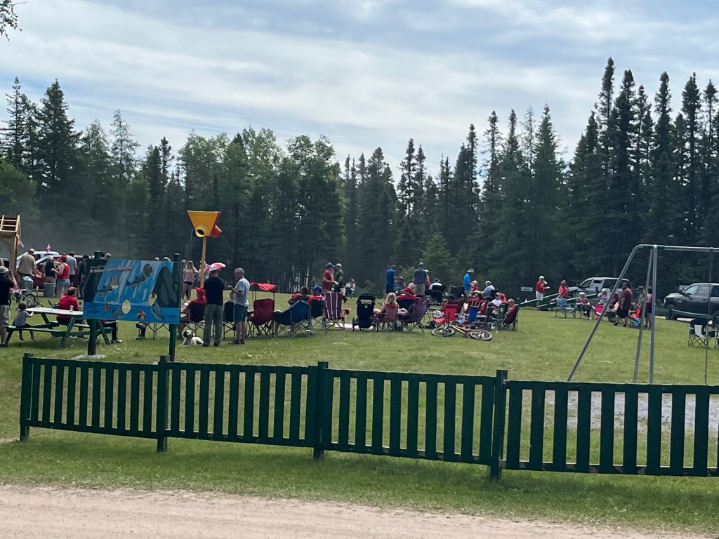 34. Fascinant. Le party du Canada Day a eu lieu de midi a 15h. À l’heure du souper et en soirée, rien. Un vendredi. Pas un son. Pas de rassemblement. Pas de bière entre copains. Pas de bbq. Rien. A 15h ‘sont partis se coucher ! J’entends l’eau de la rivière. Et un chien (indépendantissse ?) à l’occasion.