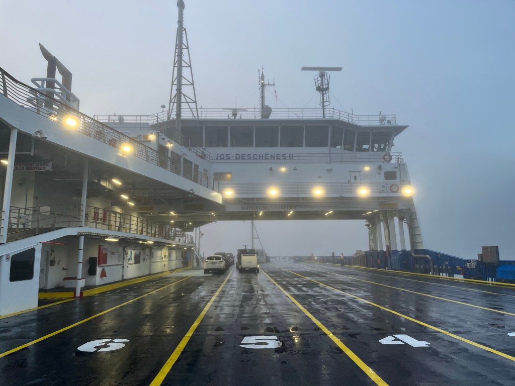 33. Mini pèlerinage pré-Pape à la basilique de Ste-Anne-de-Beaupré. Bof n’est pas croyant … mais on sais jamais 😉. Comme souvent dans les églises que je visite, j’allume deux cierges. Un pour mes parents, et un pour les parents, très croyants, de mon Ex.32. Traversée du Saguenay dans la brume. Sur le Jos Deschênes II.31. Ultime levée du jour de ce périple.